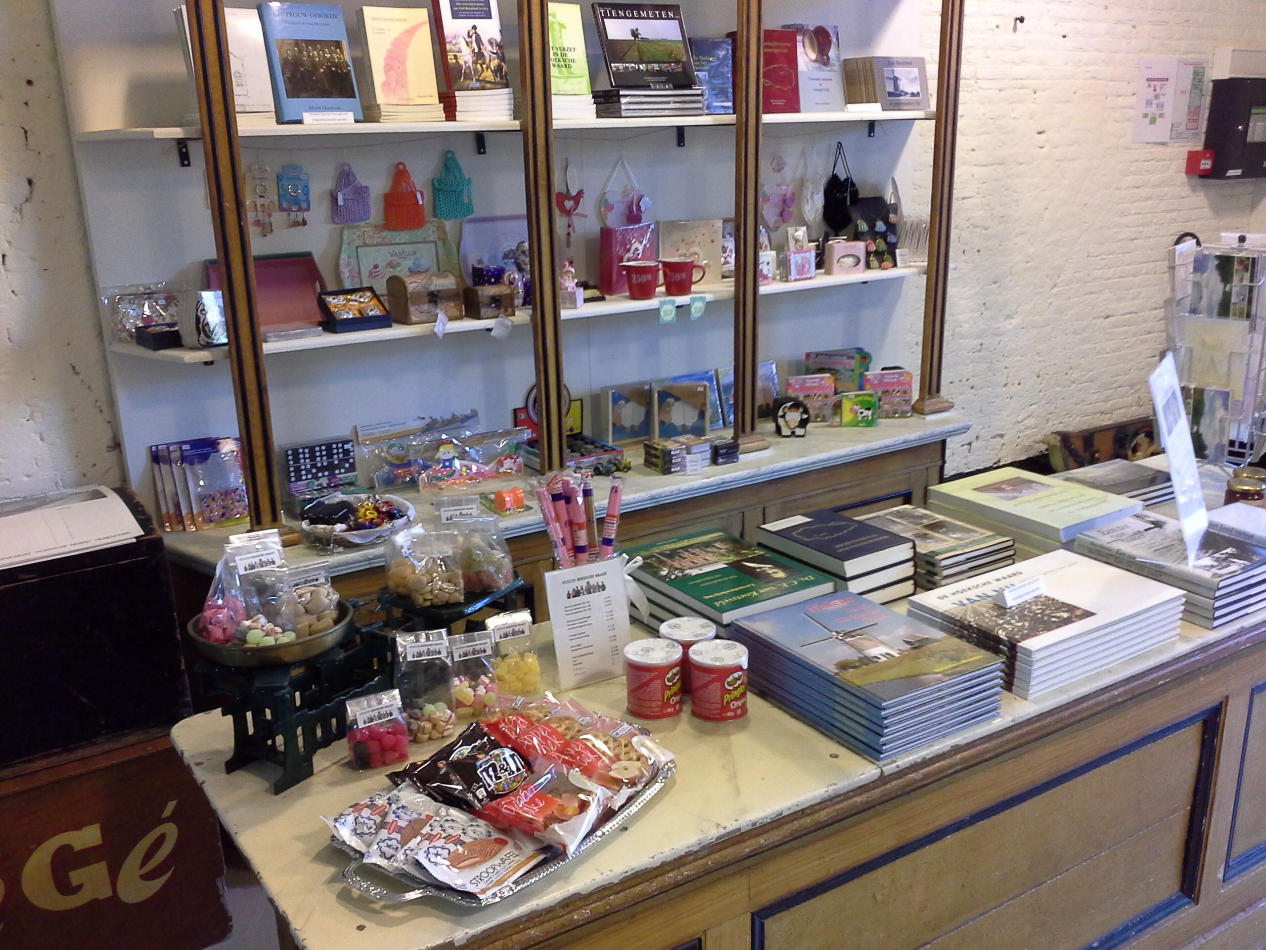 De museumwinkel in 't Hof van Assendelft is gesitueerd in de entreehal. In Boerderij Oost-Leeuwenstein zijn de producten uitgestald in een sfeervolle kast.